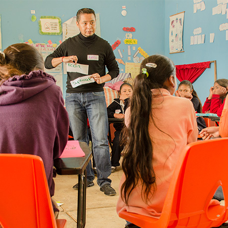 Formamos a docentes en habilidades clave para prevenir la deserción escolar y promover el desarrollo de diferentes tipos de inteligencia, quienes con nuestro acompañamiento replican el programa con los estudiantes. Involucramos a padres y madres en los nuevos enfoques educativos.