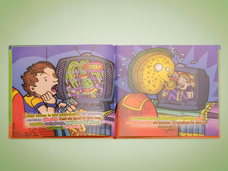 A través de este libro, aprendemos que existen diferentes formas de ver la televisión: una en la que sólo estamos recibiendo información de manera pasiva y otra en la que vemos sólo lo que hemos decido ver, después de haber analizado sus ventajas y desventajas y tomar la responsabilidad de esta decisión. En esta forma de ver la televisión también nos preguntamos si es verdad todo lo que nos dicen en la tele, criticamos y analizamos esta información. Con este libro aprenderemos que la televisión no debe controlarnos, sino que nosotros la podemos controlar a través de nuevos ojos.